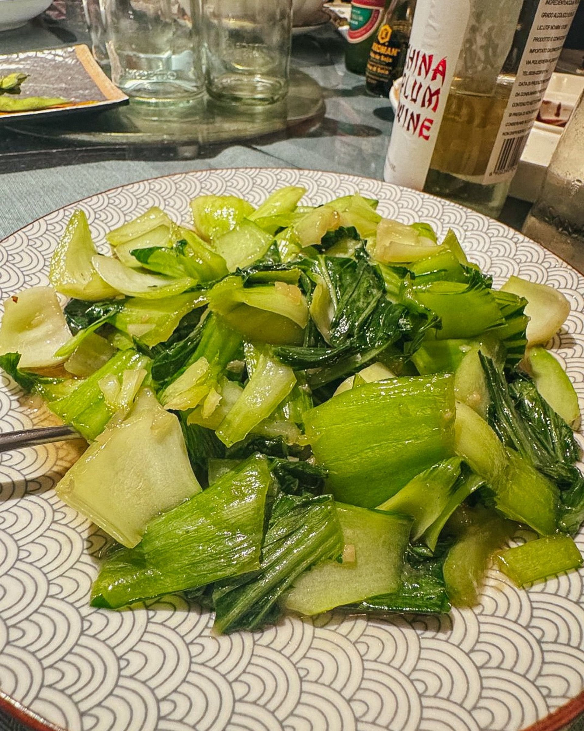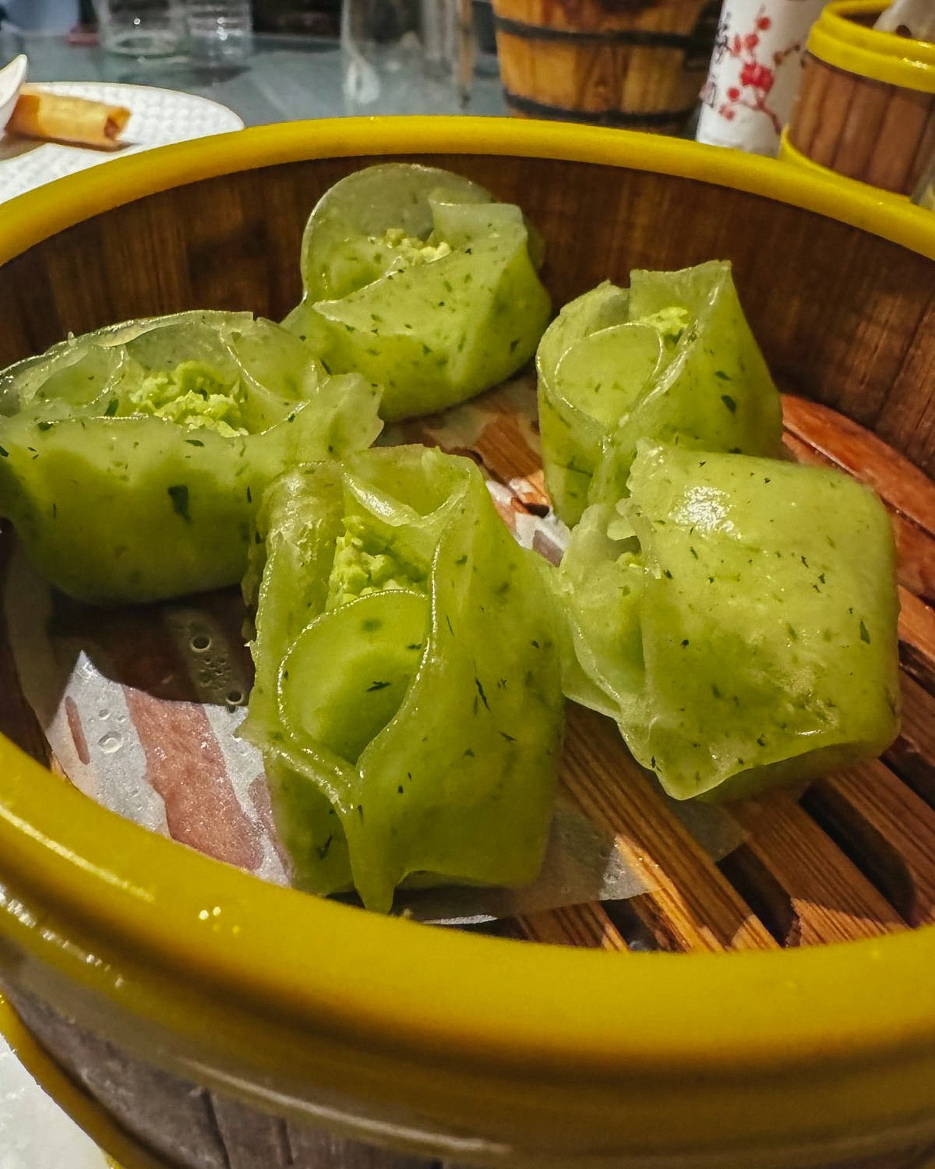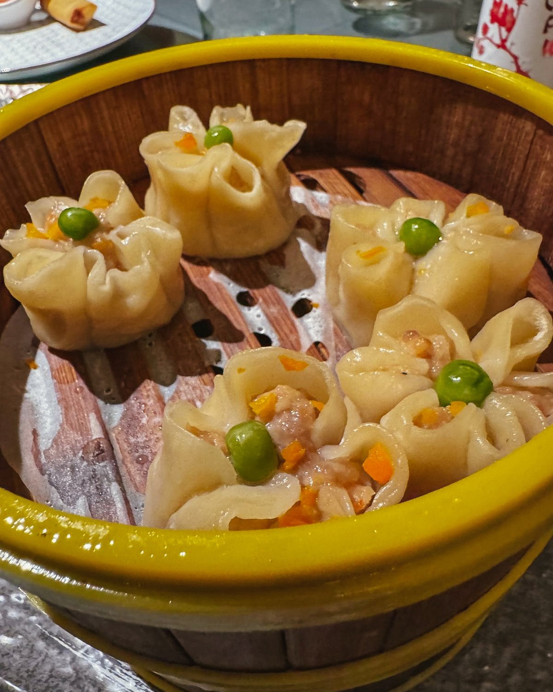 Menù: degustazione di dim sum artigianali (shao mai, jiaozi, cheung fun, ravioli di pak choi, ravioni al branzino, xiaolongbao, ravioli di anatra), riso Ta Hua, tagliatelle in salsa tausi, gamberi sale e pepe, vitello con cipollotto e zenzero, costolettine di maiale caramellate, mochi gelato