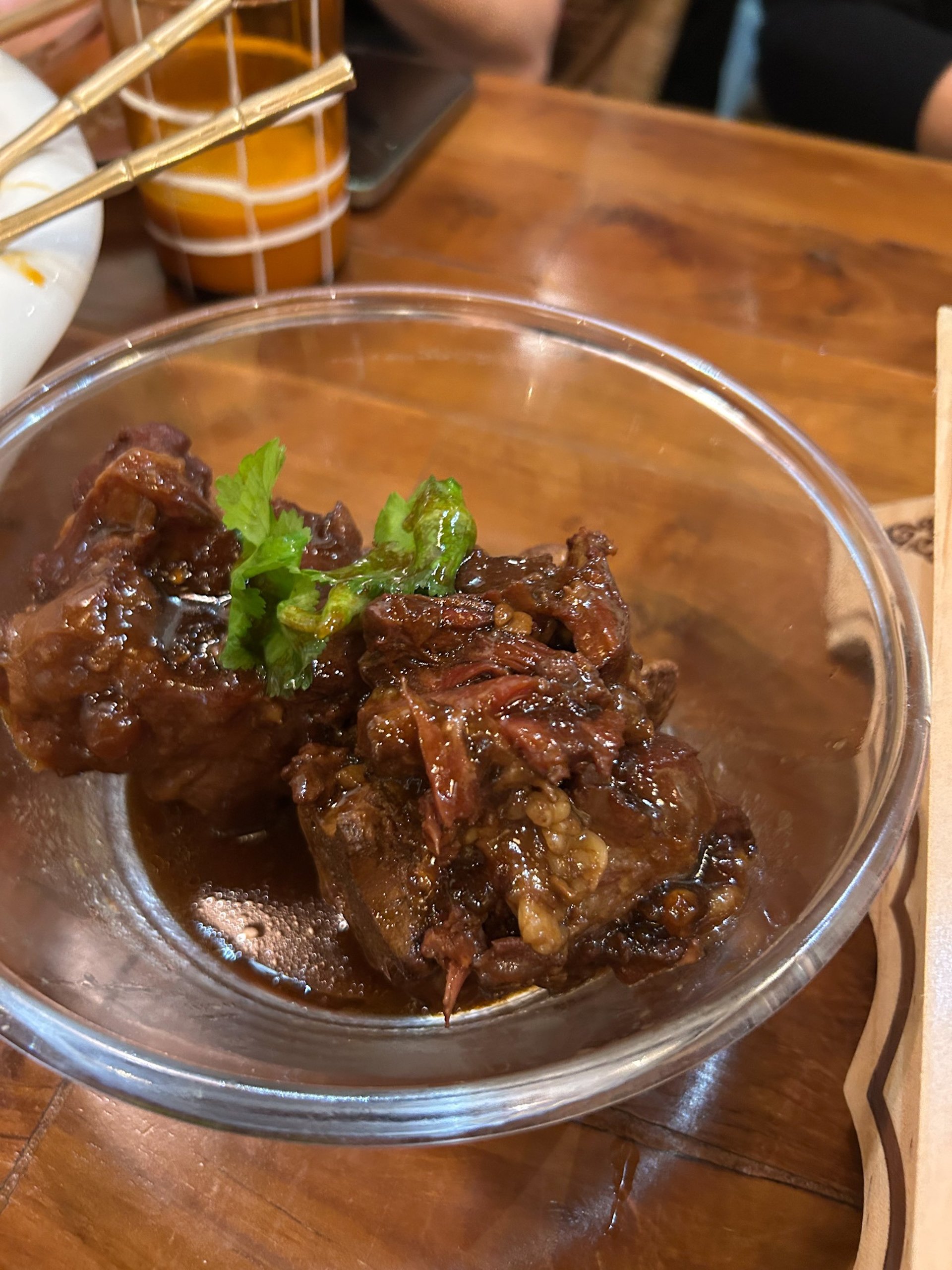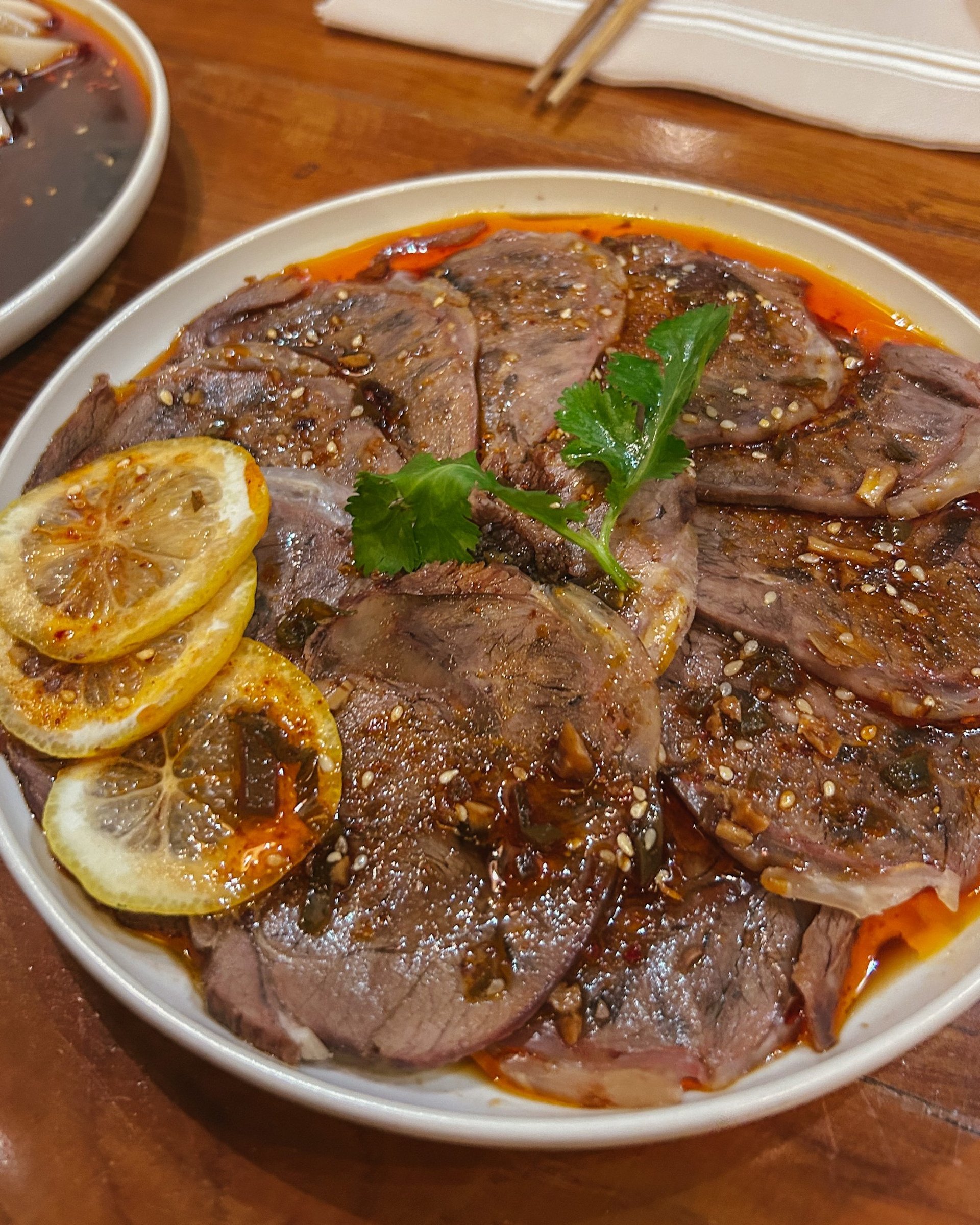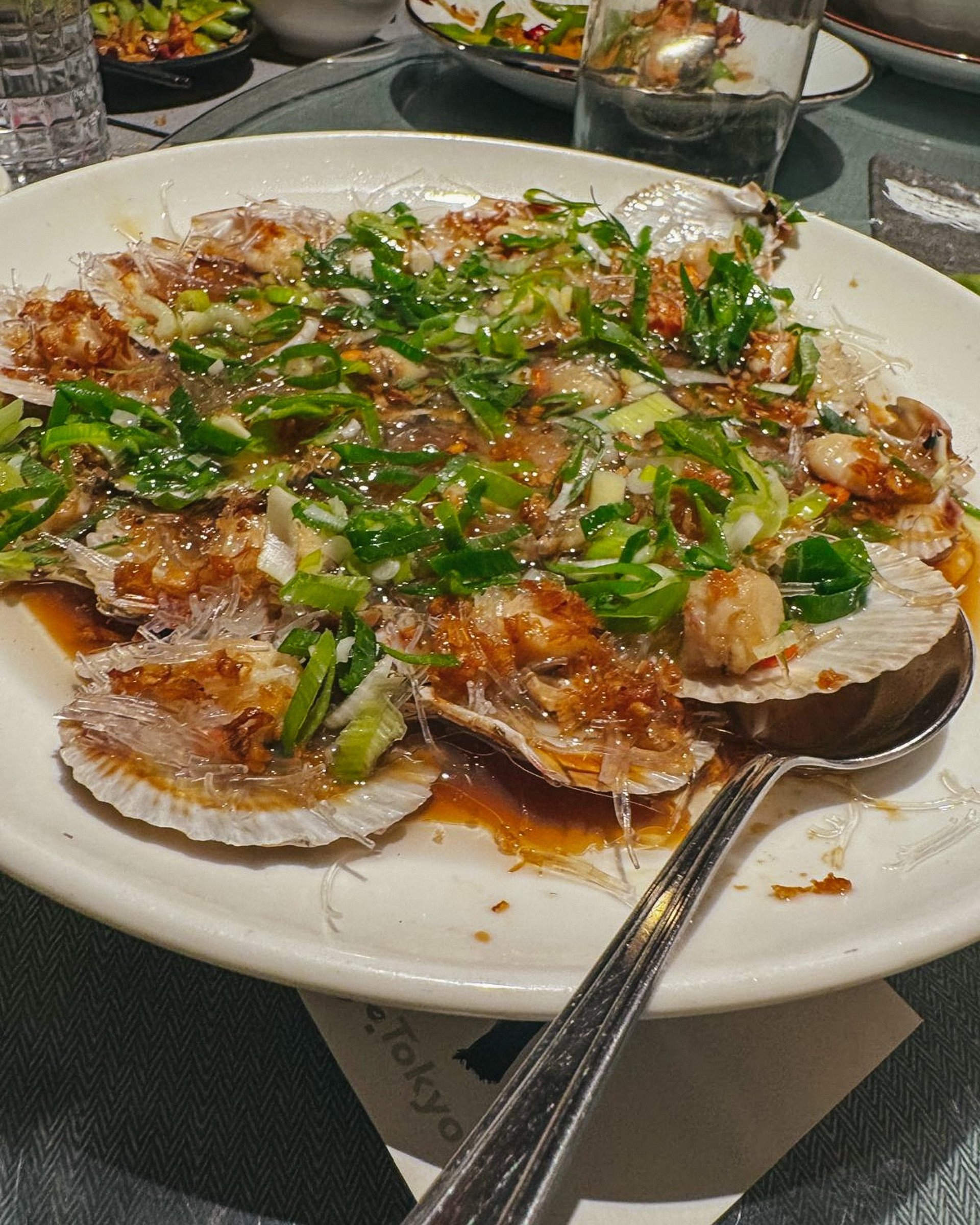 Menù: polpette di gamberi, involtini, ravioli di gamberi al vapore, xiao long bao, dimsum edamame, dimsum vitello Sichuan, edamame, pollo in di salsa arachidi, cetrioli schiacciati, fettine di manzo stufato in soia, riso croccante dorato, la mian saltati, gnocchi di riso saltati, spaghetti stile Chongqing, rombo al vapore, capesante con spaghetti di soia, anatra pechinese, zuppa di pollo Sichuan, melanzane con aromi, torta di riso